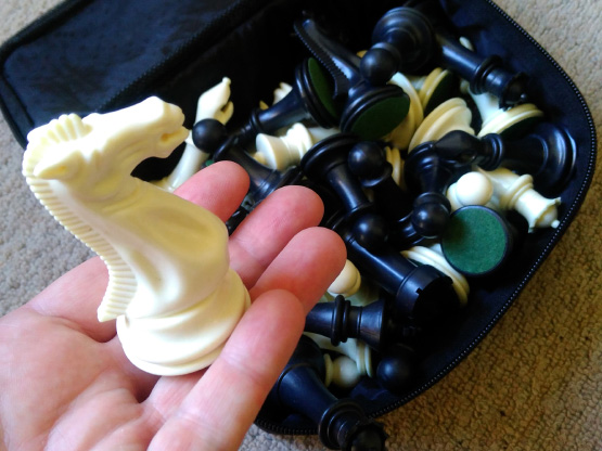 Not a good christening for my new chess pieces. I don't want to sound superstitious, but we've been using Dane's pieces lately and I've been doing well... better leave my pieces at home next time.
